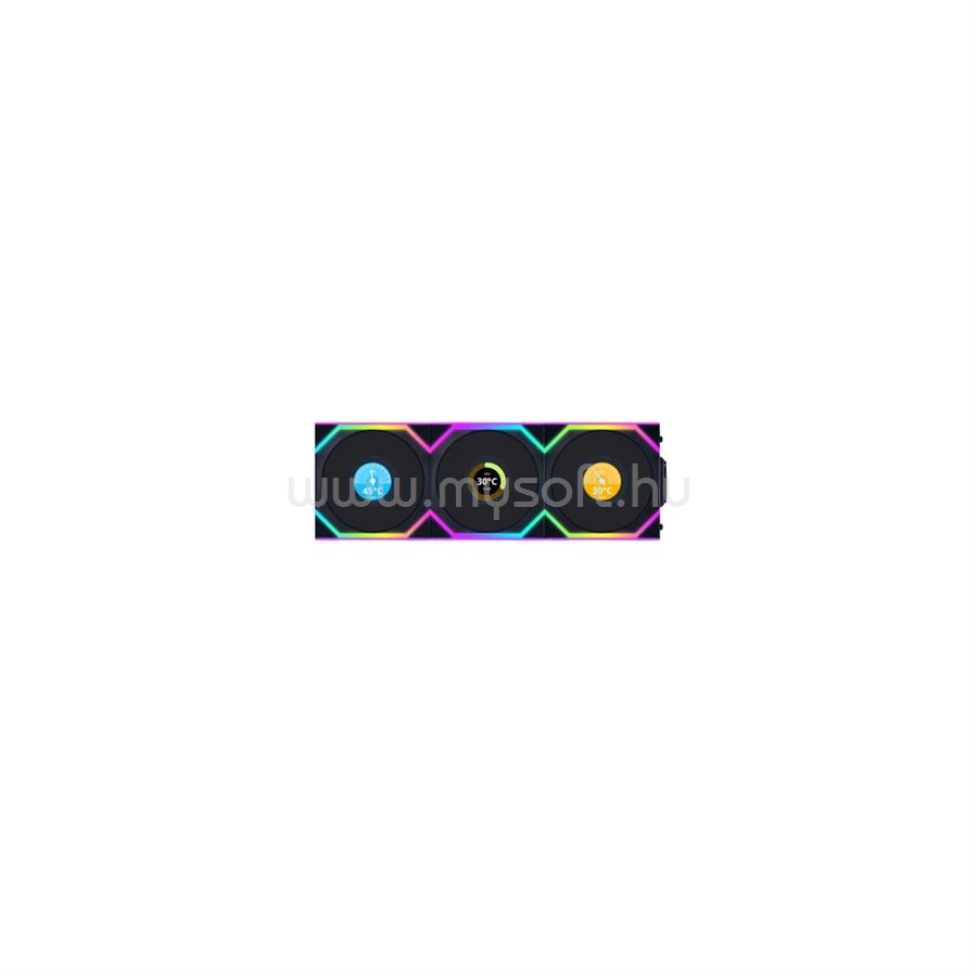 LIAN LI UNI FAN SL Wireless LCD 120 rendszerhűtő - ARGB, PWM, 300-1900rpm, 29,5dBA, fekete, 3db + kontroller