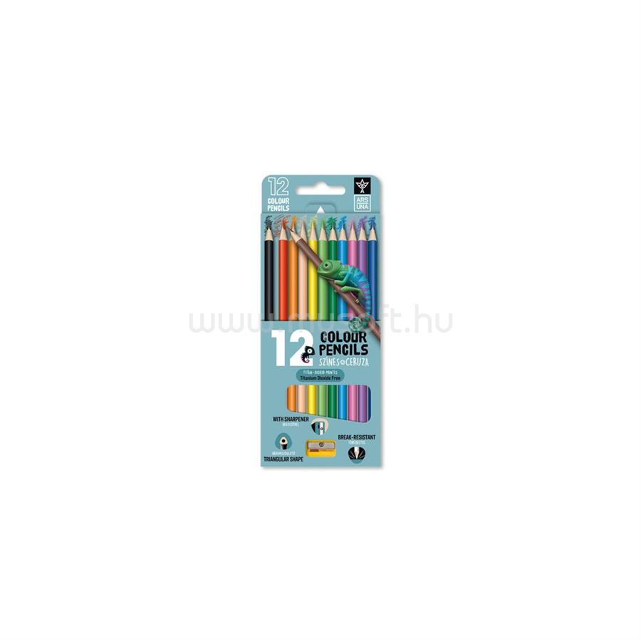 ARS UNA SZÍNES CERUZA KÉSZLET, HÁROMSZÖGLETŰ , HEGYEZŐVEL 12 KLF. SZÍN,