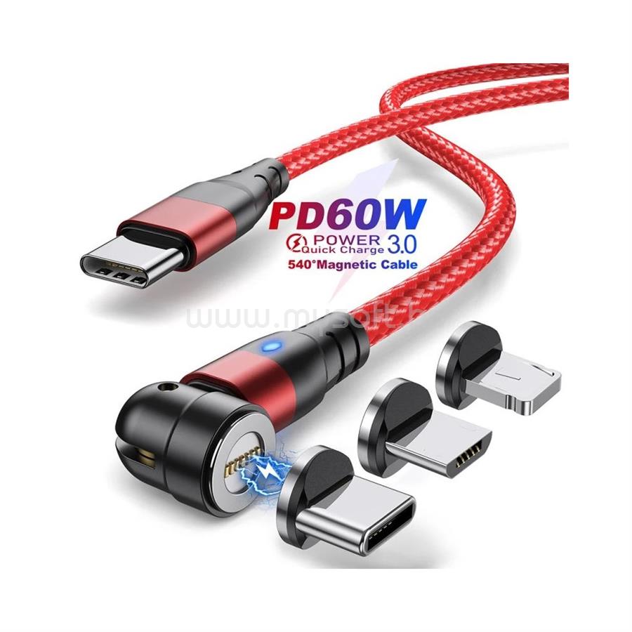 BLACKBIRD Mágneses Adatkábel PD 60W QC3.0 USB-C to Lightning/Micro USB, USB-C (BH1412)