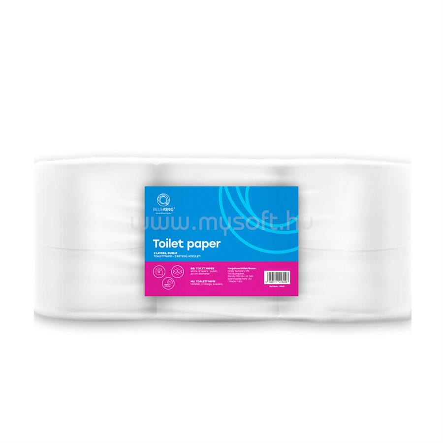 BLUERING Toalettpapír 2 rétegű közületi átmérő: 19 cm 100 % cellulóz 180 m/tekercs 12 tekercs/csomag BlueringR_hófehér (BLUERING_49651)