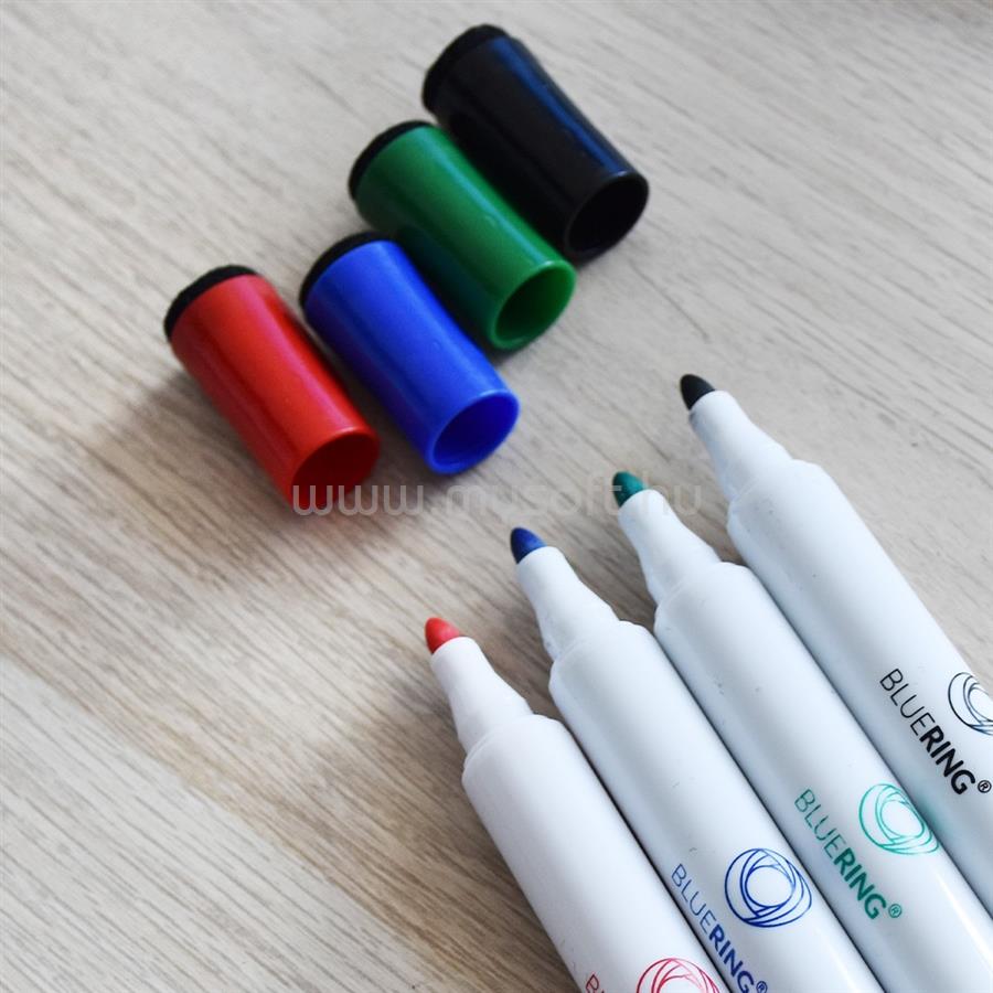 BLUERING Táblamarker készlet, 3mm, mágneses, törlővel multifunkciós kerek BlueringR, 4 klf. szín (BLUERING_BR891853)