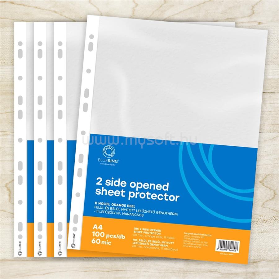BLUERING Genotherm lefűzhető, A4, 60 micron kétoldalt (felül és belül) nyitott narancsos BlueringR 100 db/csomag, (BLUERING_GENA460BLUER)