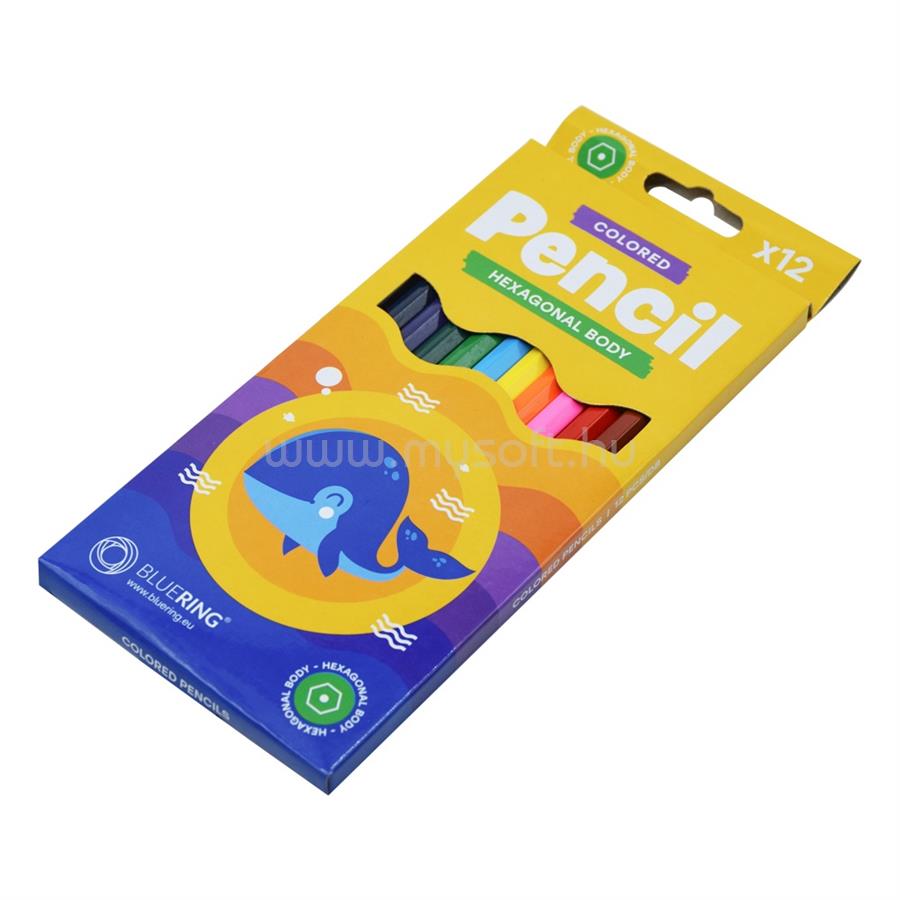 BLUERING Színes ceruza készlet, hatszögletű BlueringR 12 klf. szín (BLUERING_JJ10102)