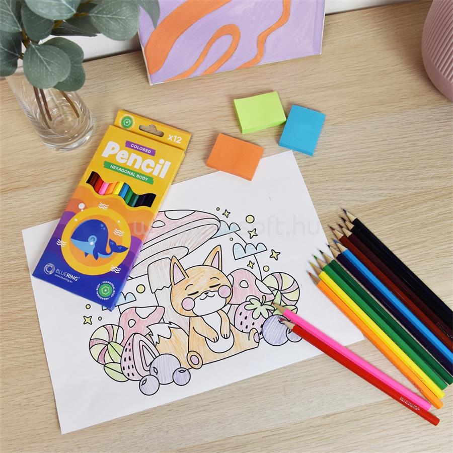 BLUERING SZÍNES CERUZA KÉSZLET, HATSZÖGLETŰ BLUERINGR 12 KLF. SZÍN