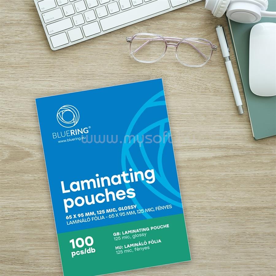 BLUERING LAMINÁLÓ FÓLIA 65X95MM, 125 MICRON 100 DB/DOBOZ, BLUERINGR