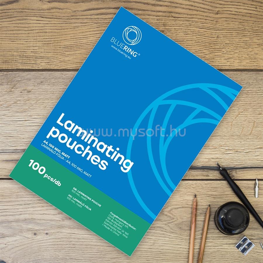BLUERING Lamináló fólia A4, 100 micron matt 100 db/doboz, BlueringR (BLUERING_LAMMA4MA100MIC)