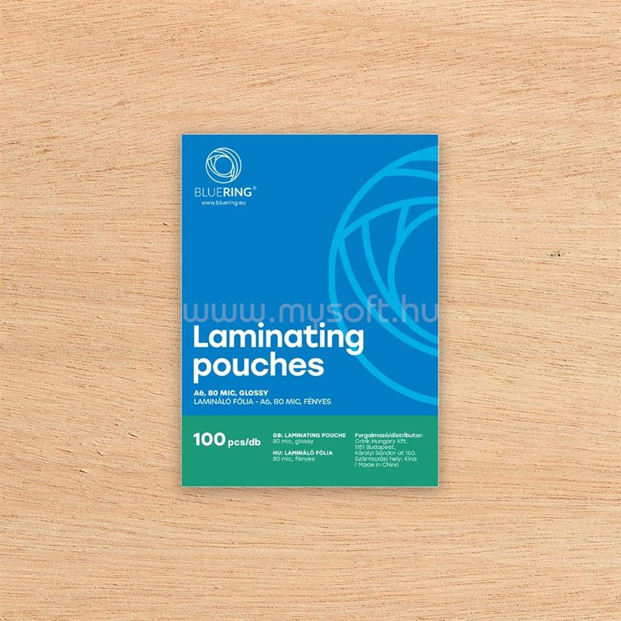 BLUERING LAMINÁLÓ FÓLIA A6, 80 MICRON 100 DB/DOBOZ, BLUERINGR