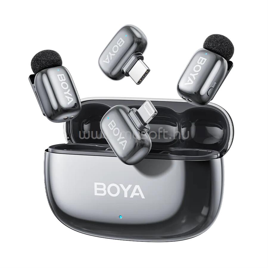 BOYA Mini 2 - 2 adó + 1 vevő (USB-C csatlakozóval) + 1 töltőtok. - Szürke