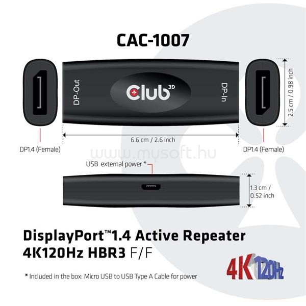 CLUB3D DISPLAYPORT 1.4 4K120HZ HBR3 ACTIVE REPEATER