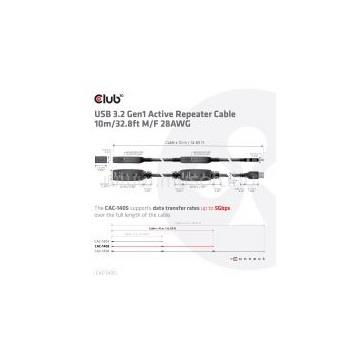 CLUB3D KAB USB 3.2 GEN1 ACTIVE REPEATER KÁBEL - 10 M MALE/FEMALE