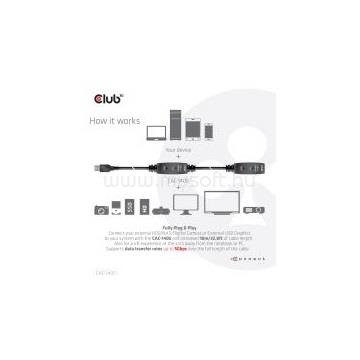 CLUB3D KAB USB 3.2 Gen1 Active Repeater kábel - 10 m Male/Female (CAC-1405)