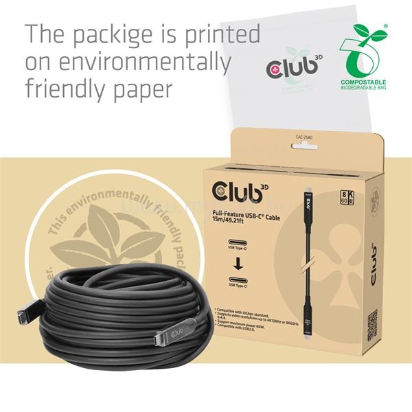 CLUB 3D KÁBEL - CAC-2580 (USB-C TO USB-C, M/M, AOC KÁBEL, 8K60HZ, 10GBPS, 60W, 15M)