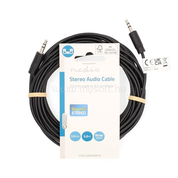 NEDIS CAGL22000BK50 sztereo audio kábel, 3,5 mm jack dugó - 3,5 mm jack dugó, 5m (CAGL22000BK50)