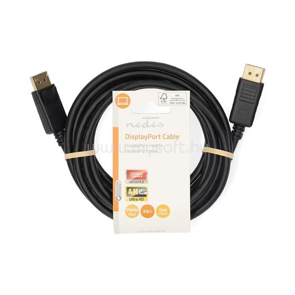 NEDIS CCGL37010BK30 Displayport kábel 4K@60Hz, aranyozott csatlakozók, 3m (CCGL37010BK30)