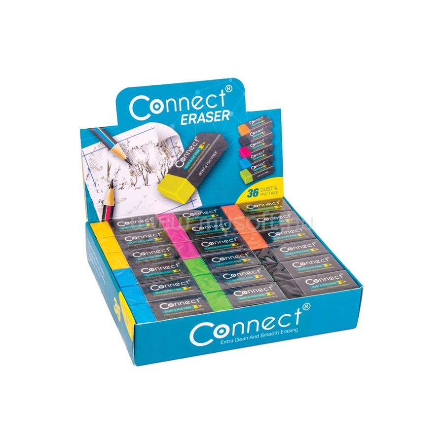 CONNECT Radír Connect plasztik, 36 db/kínáló doboz 6x6szín,