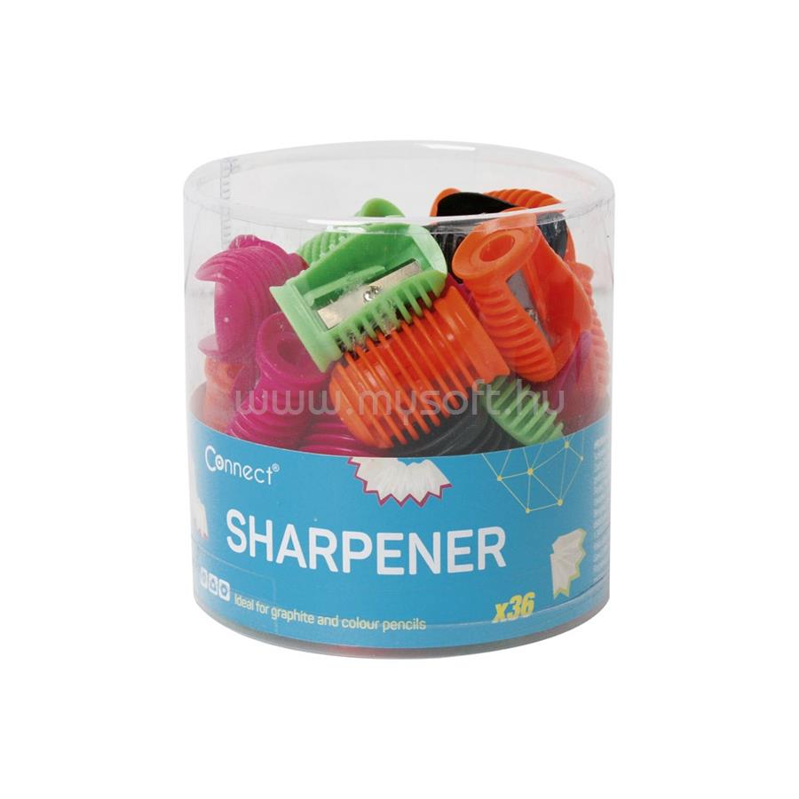 CONNECT Hegyező 1 lyukú műanyag különféle színek, 36 db/henger (CONNECT_32349)