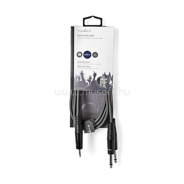 NEDIS félprofi audió kábel COTH23200GY15, 3,5mm szteró jack dugó - 2 x 6,35mm monó jack dugó, hossz 1.5m, rugalmas (COTH23200GY15)