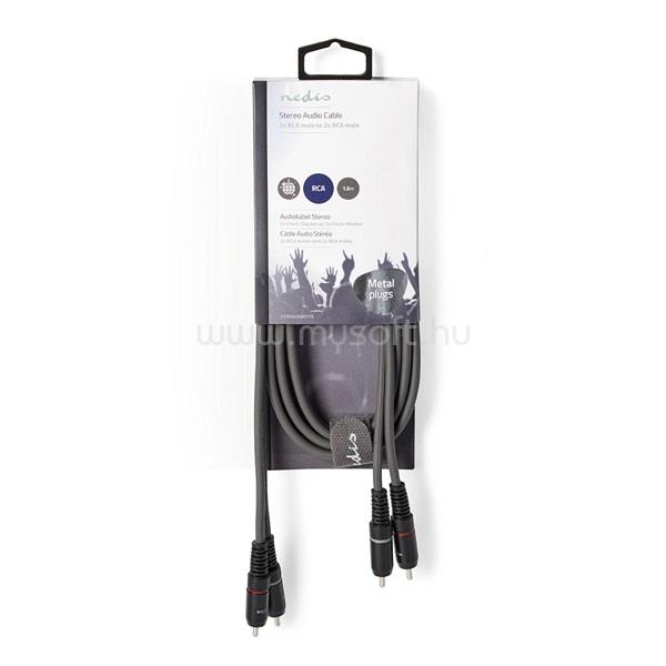 NEDIS COTH24200GY15 sztereo audió kábel, 2x RCA apa 2x RCA apa, Nikkelezett, 1,50 m, kerek, Sötétszürke
