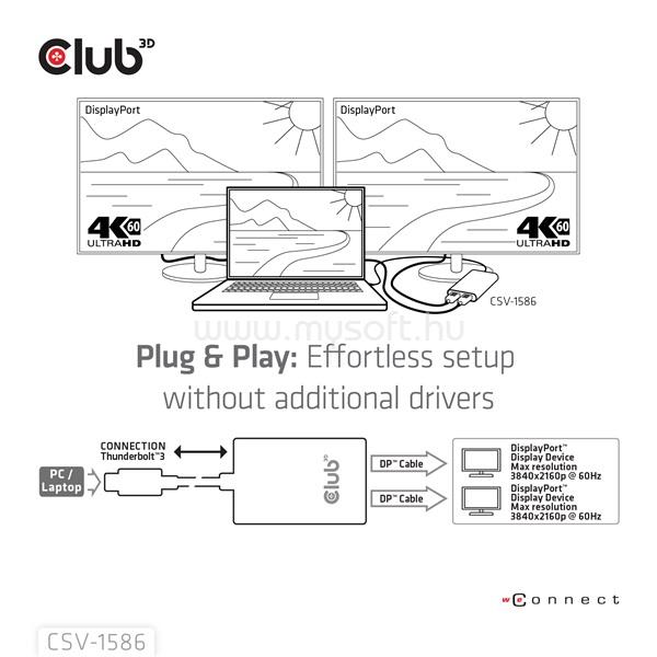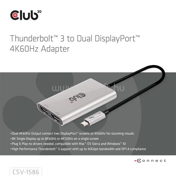 CLUB 3D VIDEO SPLITTER - CSV-1586 (THUNDERBOLT 3 TO DUAL DISPLAYPORT, 40GBPS, 4K60HZ)
