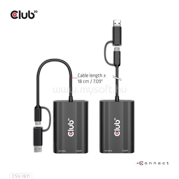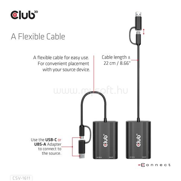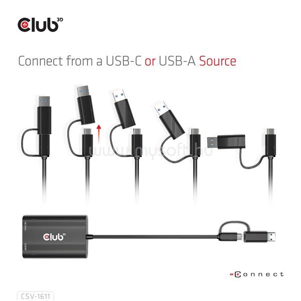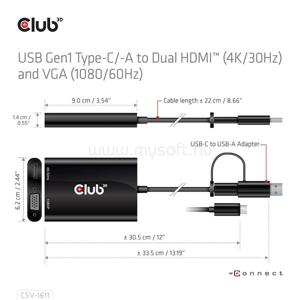 CLUB 3D Átalakító - CSV-1611(USB-C (USB-A Adapterrel) to Dual HDMI (4K/30Hz) / VGA (1080/60Hz)) (CSV-1611)