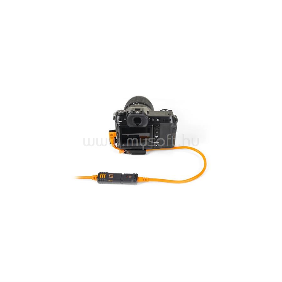 TETHER TOOLS TETHERPRO OPTIMA 10G USB-C, 20 (51CM), STRAIGHT TO RIGHT ANGLE ADAPTER "PIGTAIL" CABLE, HIGH VISIBILITY ORANGE