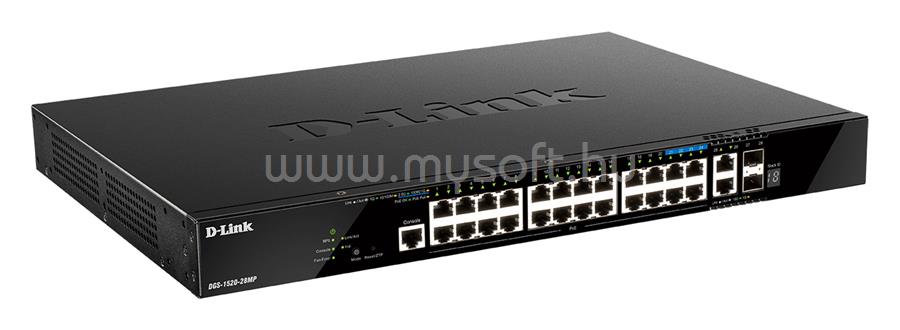 D-LINK DGS-1520-28MP Switch 24x1000Mbps(24xPOE) + 2x10G + 2xGigabit SFP+ Menedzselhető Rackes (DGS-1520-28MP/E)