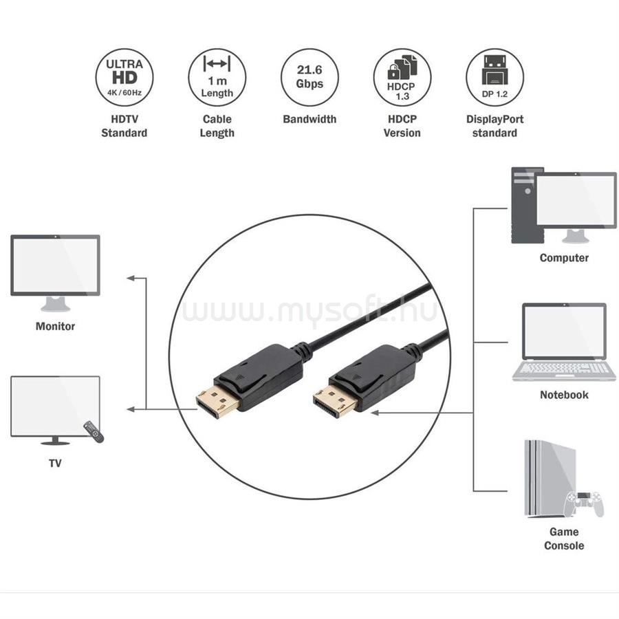 DIGITUS AK-340100-010-S 4K Display port 1m kábel (DIGITUS_AK-340100-010-S)