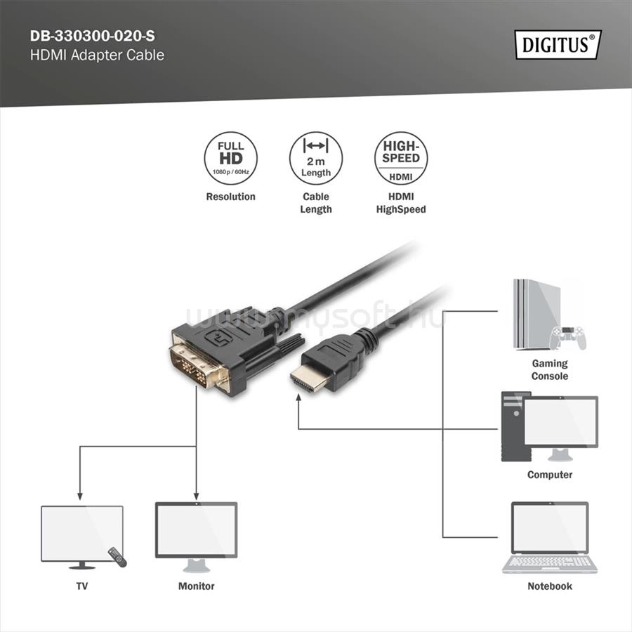 DIGITUS High Speed Full HD 60Hz DVI-D - HDMI type A kábel 2m (DIGITUS_DB-330300-020-S)