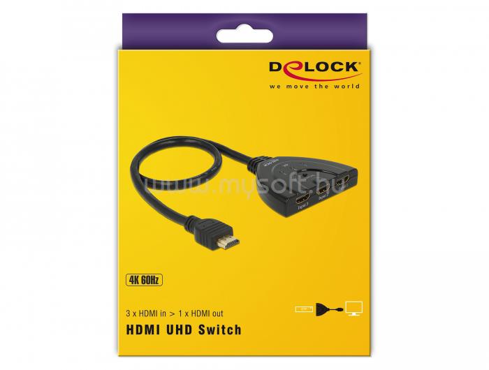 DELOCK Switch HDMI UHD 3x HDMI in 1x HDMI out 4K, 50cm kábellel