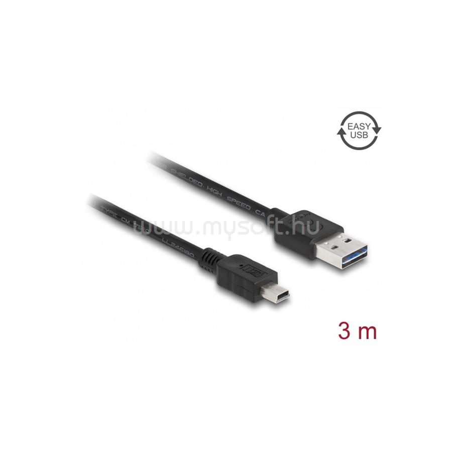 DELOCK kábel EASY-USB 2.0 Type-A male > USB 2.0 Type Mini-B male 3m fekete (DL83364)