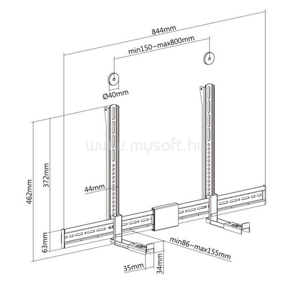 EQUIP 650895 Soundbar fali konzol (Támogatott szélesség: 86-155mm, rezgés csökkentés, fekete) (EQUIP_650895)