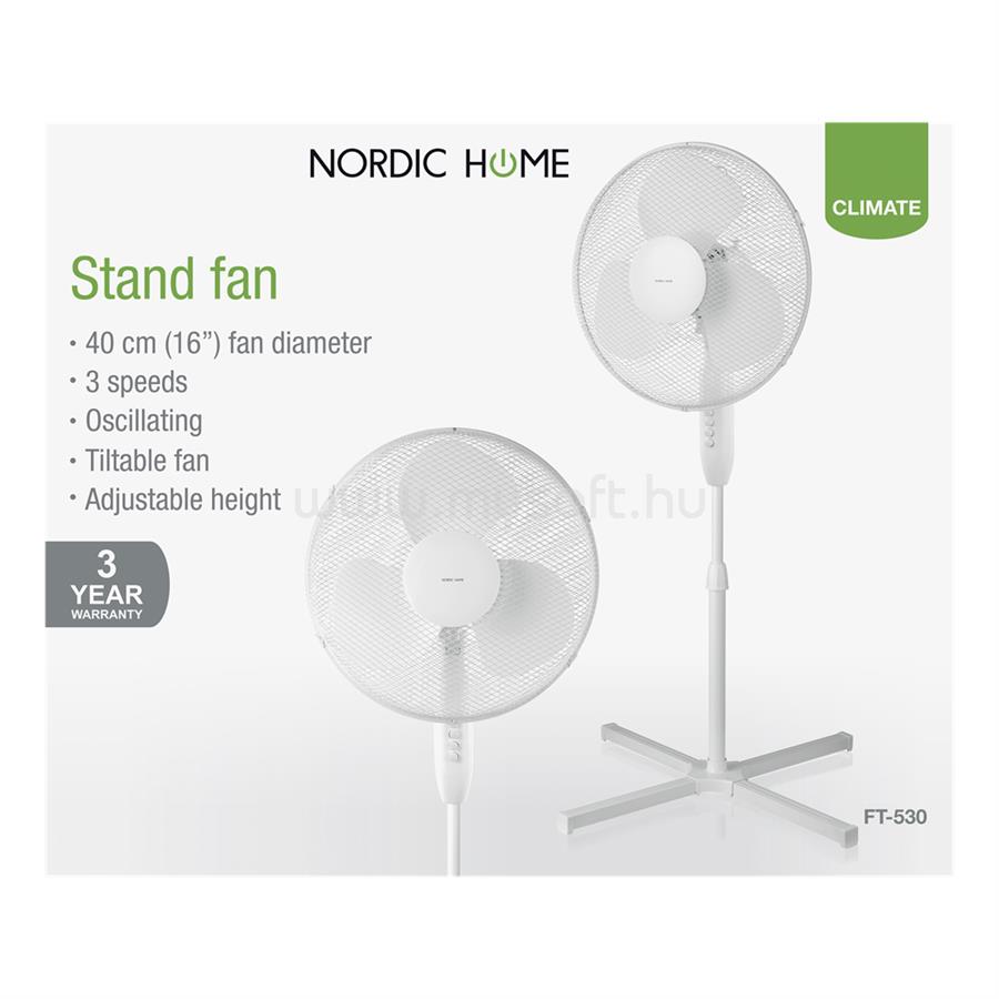 DELTACO NORDIC HOME FT-530 40cm állóventilátor, telejesítmény: 50W, oszcilláló, 3 sebesség fokozat, dönthető (FT-530)