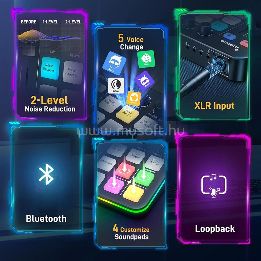 • Csúcsminőségű hangzás: Beépített Pro-előerősítőnk és 48 V-os fantomteljesítményünk maximalizálja az XLR-mikrofon potenciálját, így biztosítva csúcsminőségű hangzást a streamek számára. A pontos erősítés- és hangerő szabályozással csapattársaid hangosan és tisztán hallanak majd.