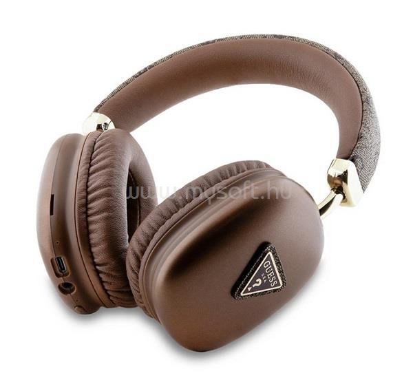 CG MOBILE GUESS PU LEATHER 4G TRIANGLE LOGO BLUETOOTH FEJHALLGATÓ SZTEREO V5.3, IPX4 VÍZÁLLÓ, BARNA