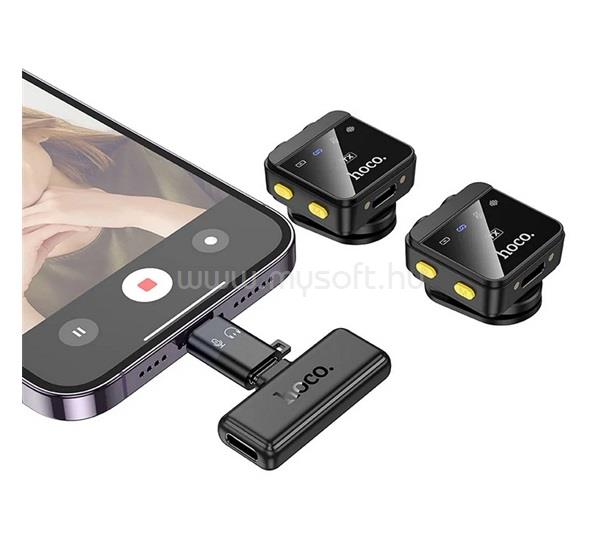 HOCO L17 bluetooth mikrofon 2db Type-C, zajszűrő + töltőtok, FEKETE (HOCO_L17)