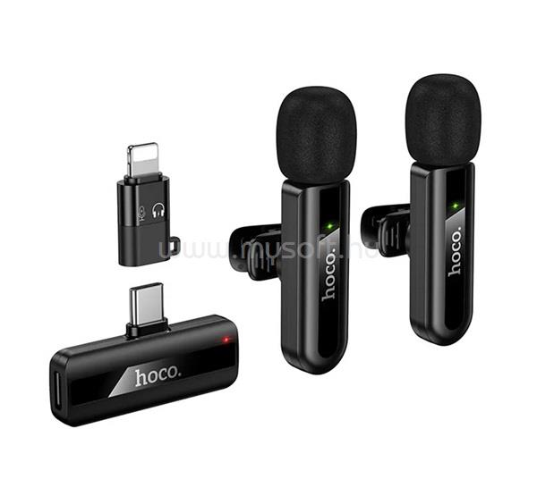 HOCO L20A bluetooth mikrofon 2db Type-C/Lightning, zajszűrő, FEKETE (HOCO_L20A_B)