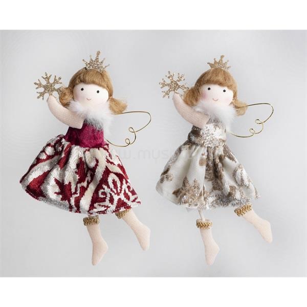 IRIS textil akasztós angyal fehér/piros 17 cm (IRIS_060639)