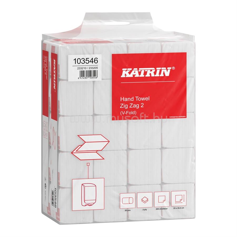 KATRIN Kéztörlő 2 rétegű V hajtogatású 2 rétegű 200 lap/tekercs 20 csomag/karton Plus Zig Zag 2_103546 hófehér