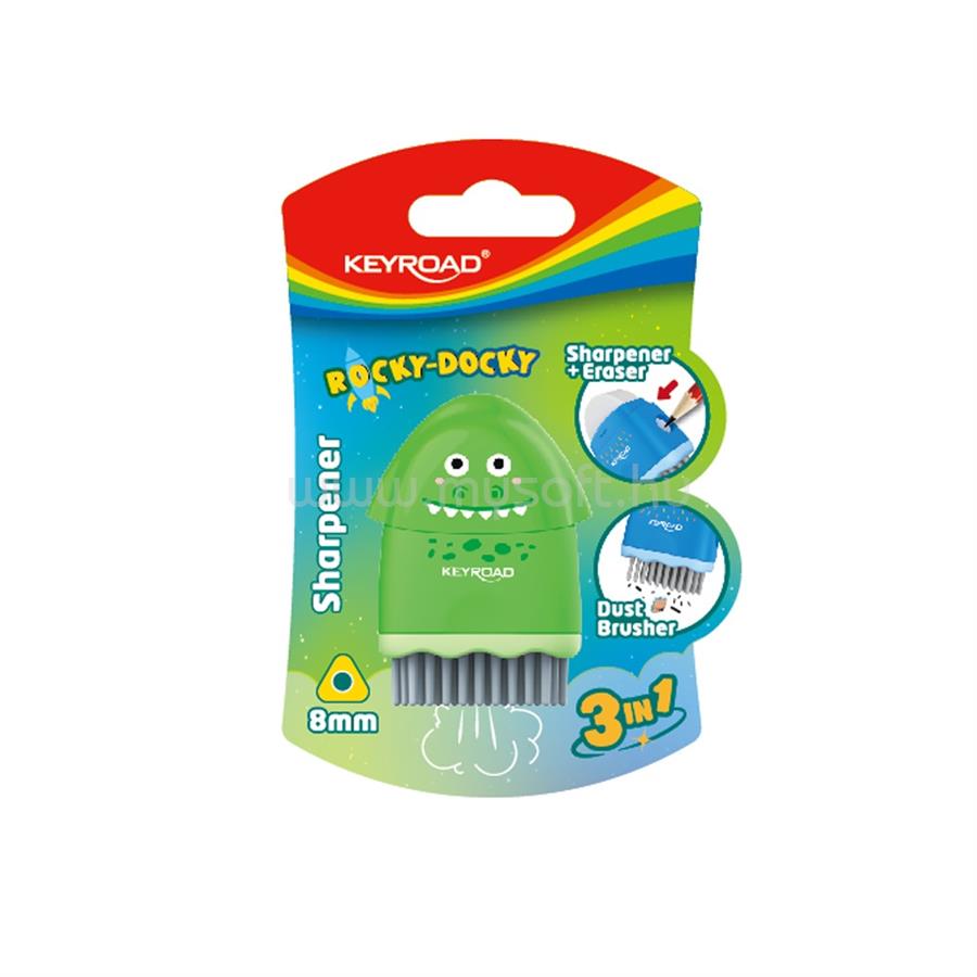 KEYROAD Hegyező 1 lyukú radírral és porkefével Rocky Docky vegyes színek (KEYROAD_38391)
