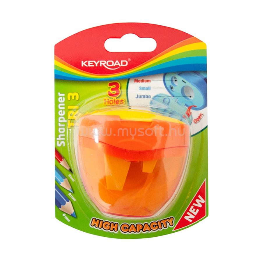 KEYROAD Hegyező 3 lyukú tartályos, fedeles Tris vegyes színek