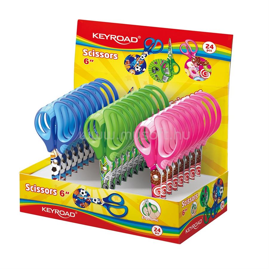 KEYROAD Olló 15 cm hegyes fejű 24 db/display Tattoo vegyes színek (KEYROAD_38443)