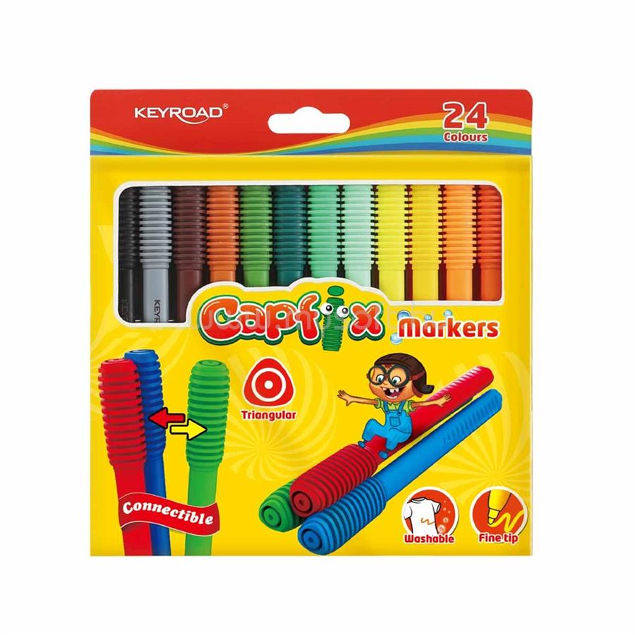 KEYROAD ROSTIRÓN, FILCTOLL KÉSZLET ÖSSZEKAPCSOLHATÓ FEJEKKEL 24 DB/BLISZTER CAPFIX VEGYES SZÍNEK