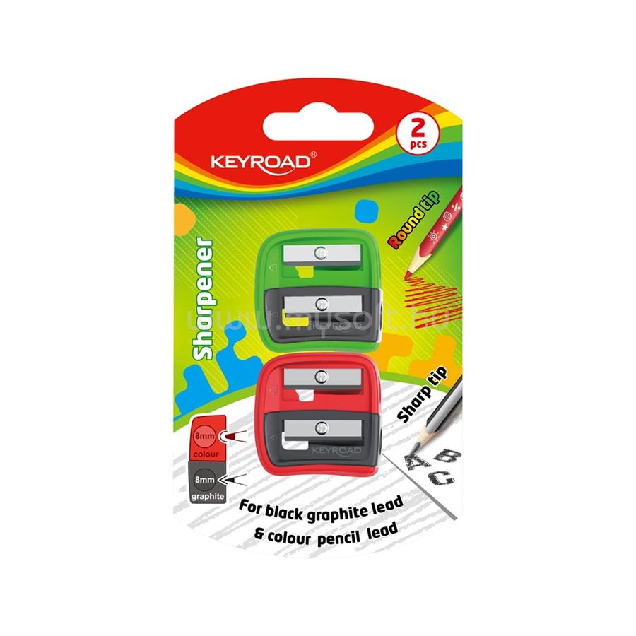 KEYROAD Hegyező, 2 lyukú, 2 db/bliszter, Dou-Power, vegyes színek (KEYROAD_54327)