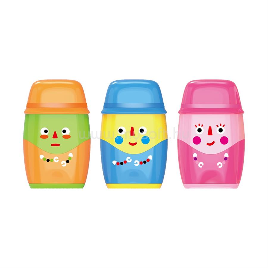 KEYROAD Hegyező, 2 lyukú, radírral, 16 db/display, 2in1, vegyes színek (KEYROAD_54331)