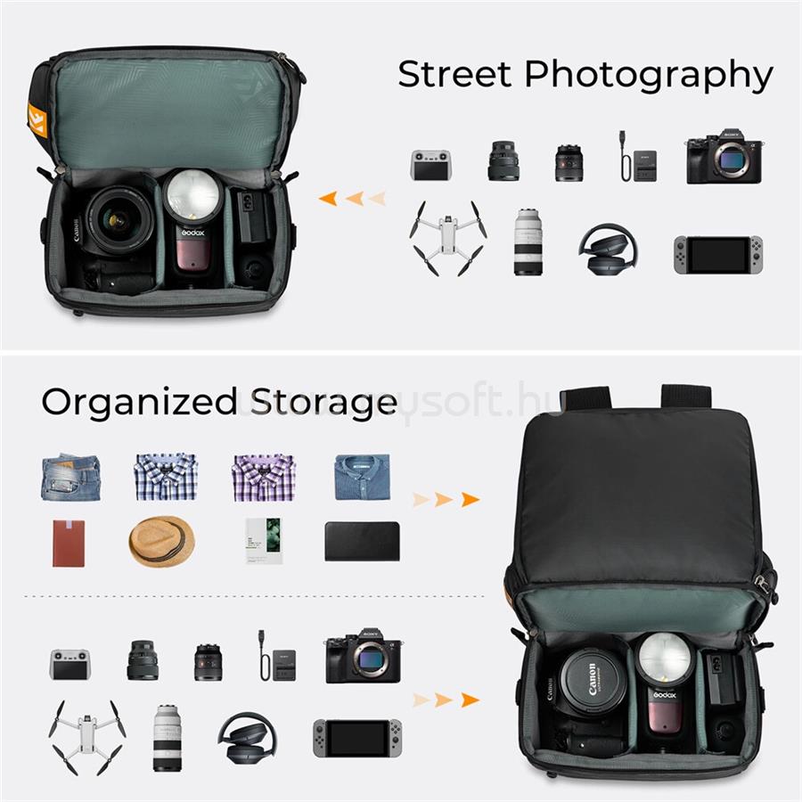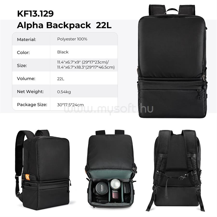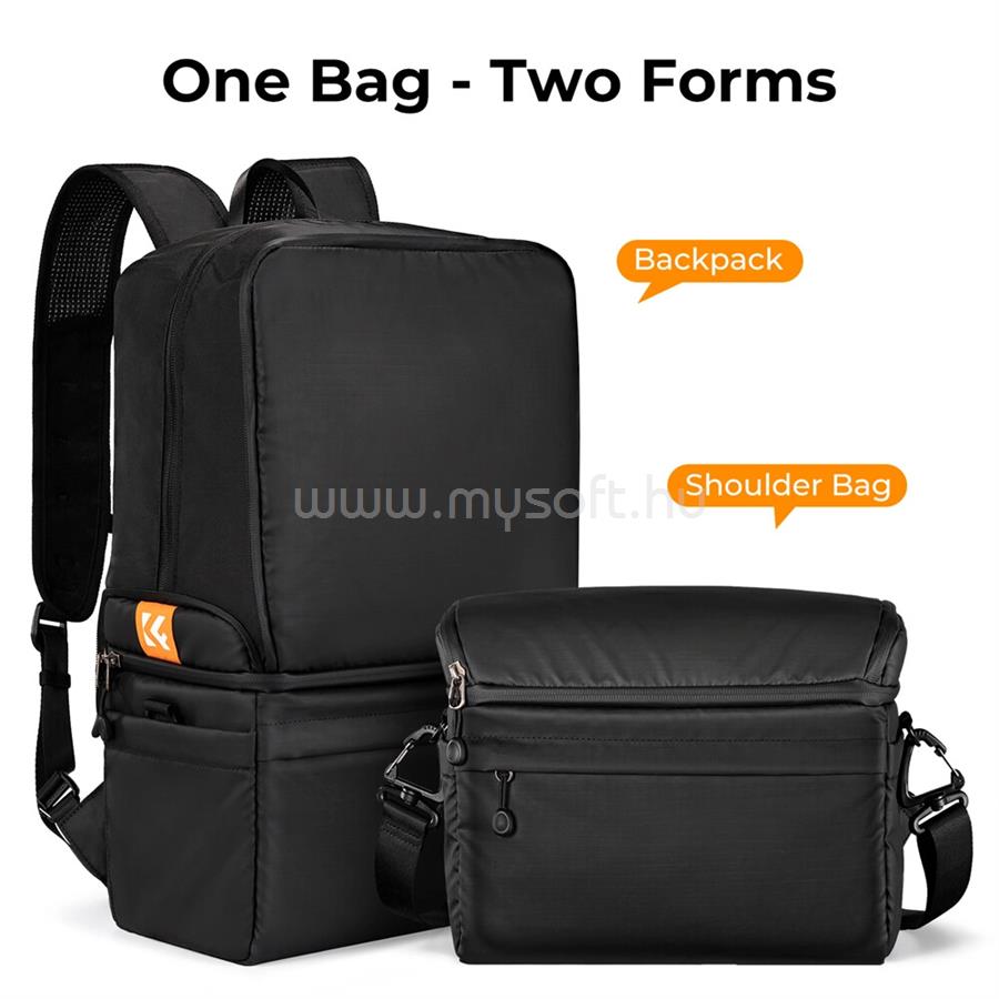 K AND F CONCEPT K&F CONCEPT COLLAPSIBLE BACKPACK 22L, FOTÓS HÁTIZSÁK, OLDALTÁSKÁVA CSUKHATÓ, FEKETE