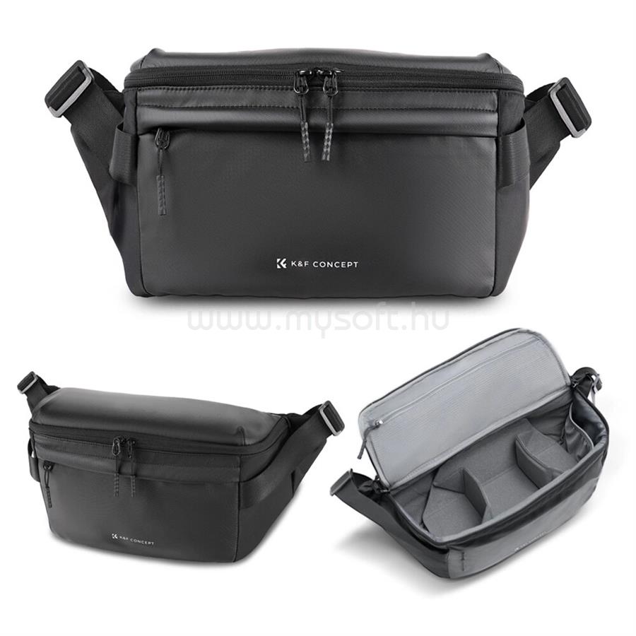 K AND F CONCEPT K&F Concept Urban Wander Sling, 12L fotos oldaltáska, fekete (KF-13-212)