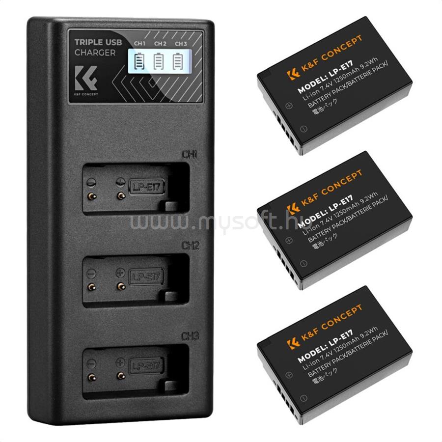 K AND F CONCEPT K&F CONCEPT HORDOZHATÓ TRIPLA USB-C AKKUMULÁTOR LC-E17 TÖLTŐ, LCD + 3DB LP-E17 AKKUMULÁTOR 1250MAH