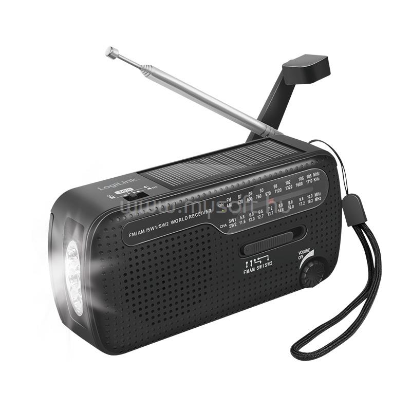 LOGILINK DYNAMO KÉZI HAJTÓKAROS RÁDIÓ, NAPELEMMEL (FEKETE)