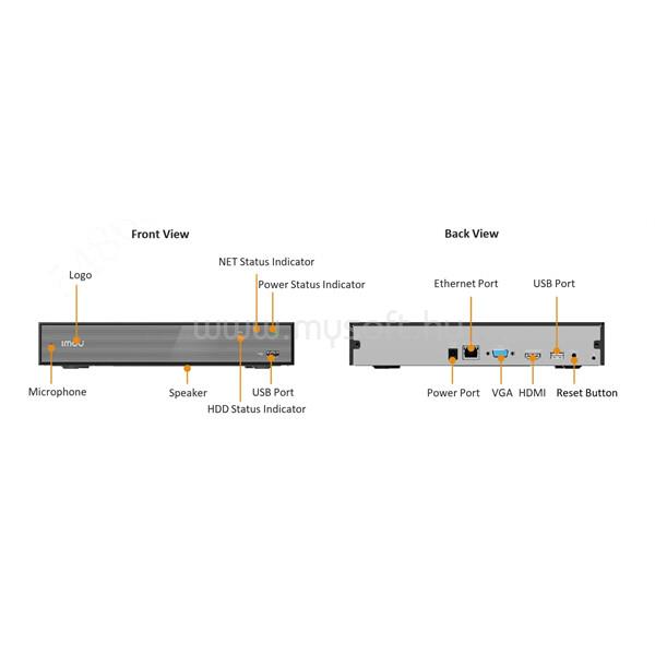 IMOU NVR RÖGZÍTŐ - NVR-N110-8A0E (10 CSATORNA, H265, HDMI, VGA, USB, 1X SATA (MAX16TB), ONVIF; HANGSZ; MIKROFON)