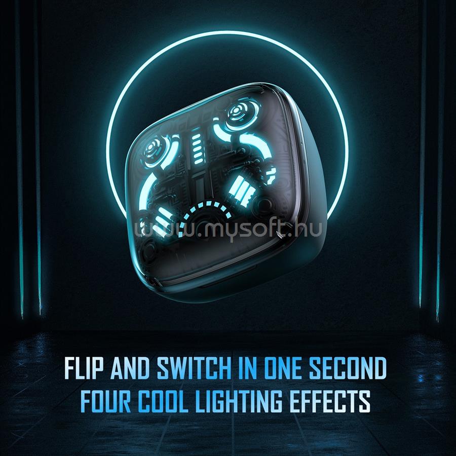 • Négy menő LED-es világítási effektus között is válthatsz, gyorsan változtatva a fejhallgató fénymegjelenítési módját, elmerülve az esport hangulatában. Játék üzemmódban a fejhallgató alacsony késleltetéssel ragyog, páratlan játékélményt nyújtva. A hang és a képi megjelenítés tökéletesen szinkronizálódik, segít pontosan meghatározni a hangforrásokat és a távolságokat egy egy játékban. Az új Bluetooth V5.3 chipfrissítés stabil és zökkenőmentes átvitelt, valamint alacsony energiafogyasztást és hosszabb akkumulátor-üzemidőt biztosít a gondtalan zenei élvezet érdekében.